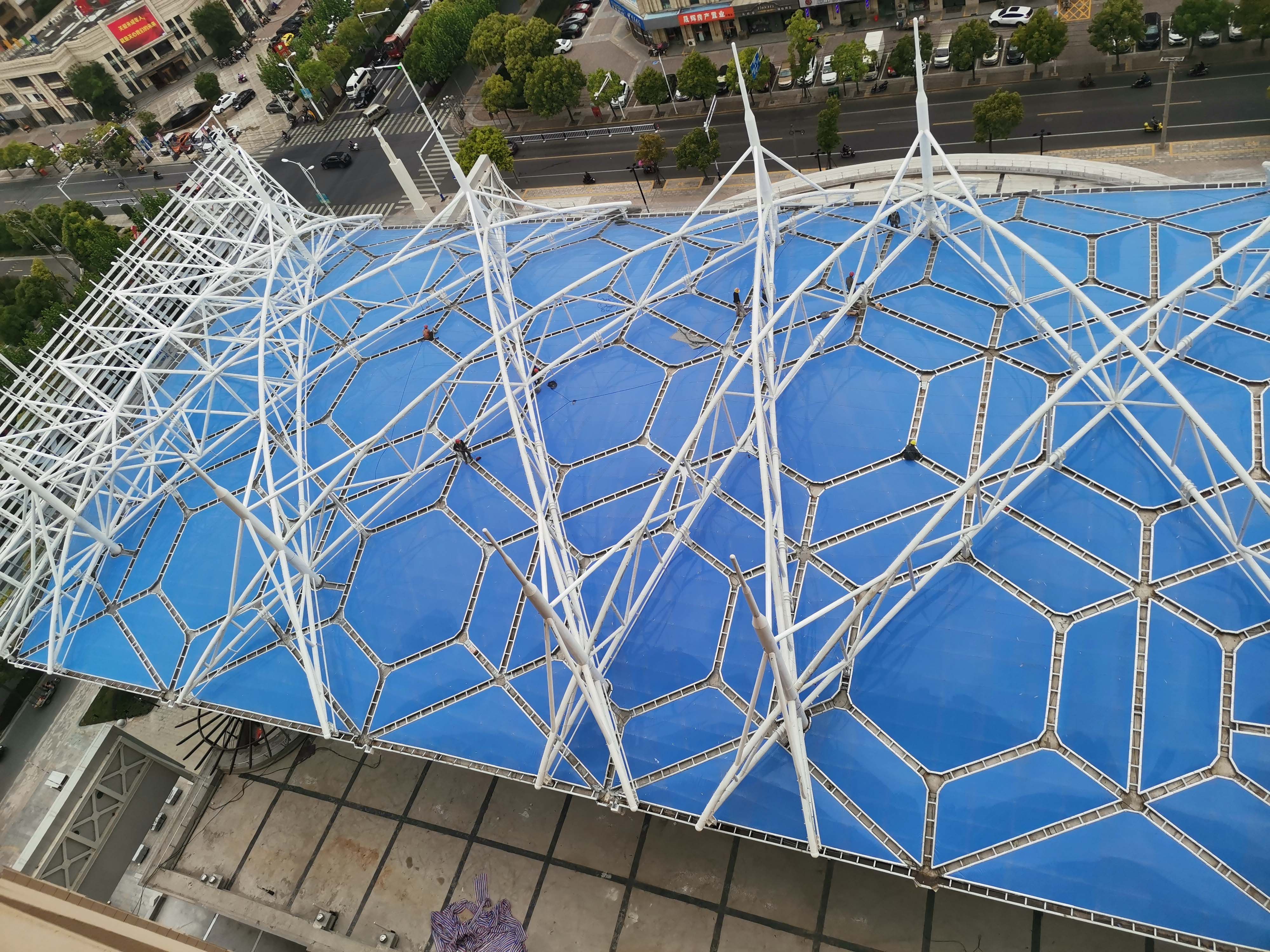 采用张弦梁钢结构与膜结构(PTFE膜)组合的采光屋顶